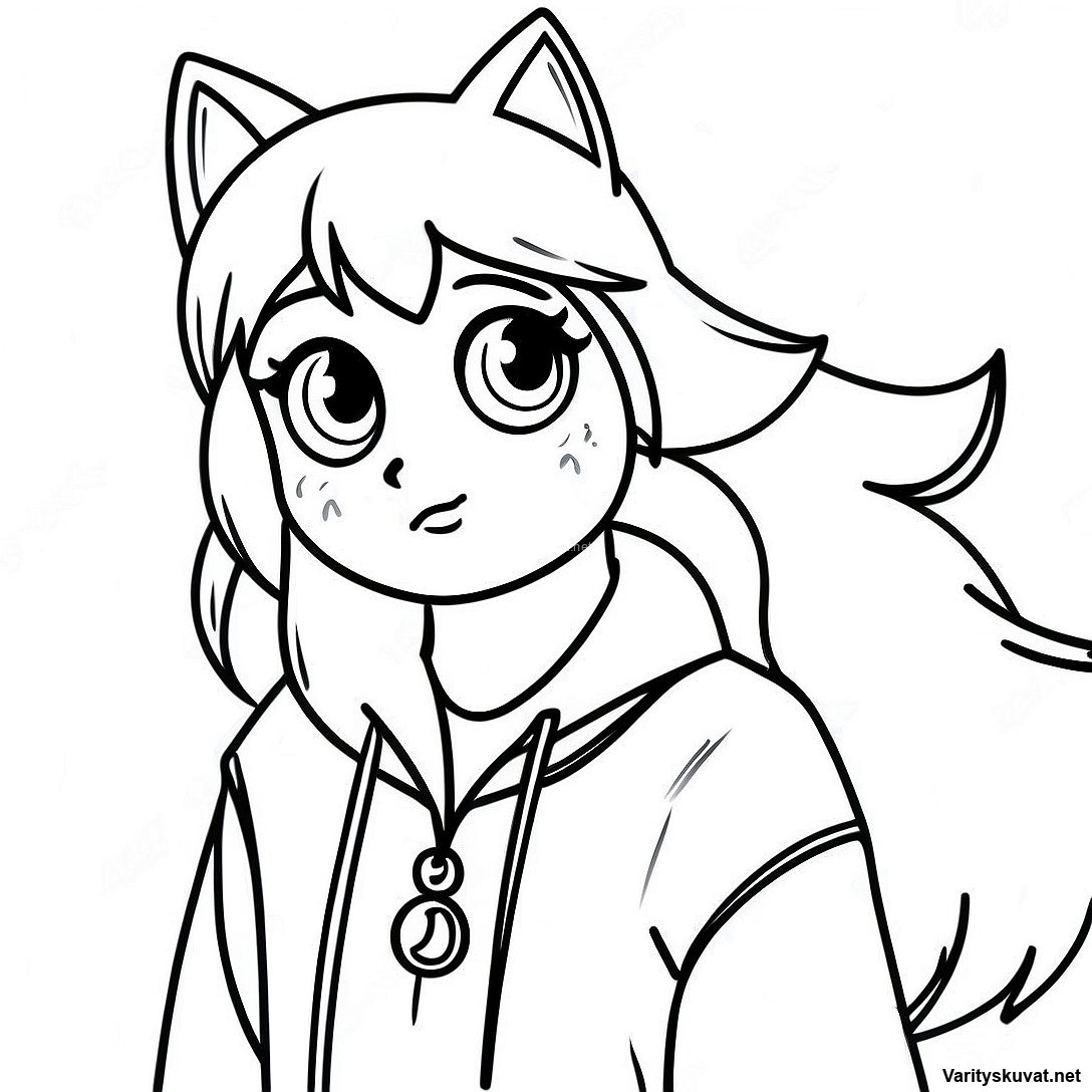 Lataa tulostettava PDF Susi Tyttö Anime Värityskuva