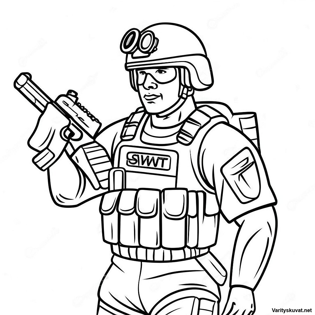 Lataa tulostettava PDF Swat-Upseeri Toiminnassa - Värityskuva