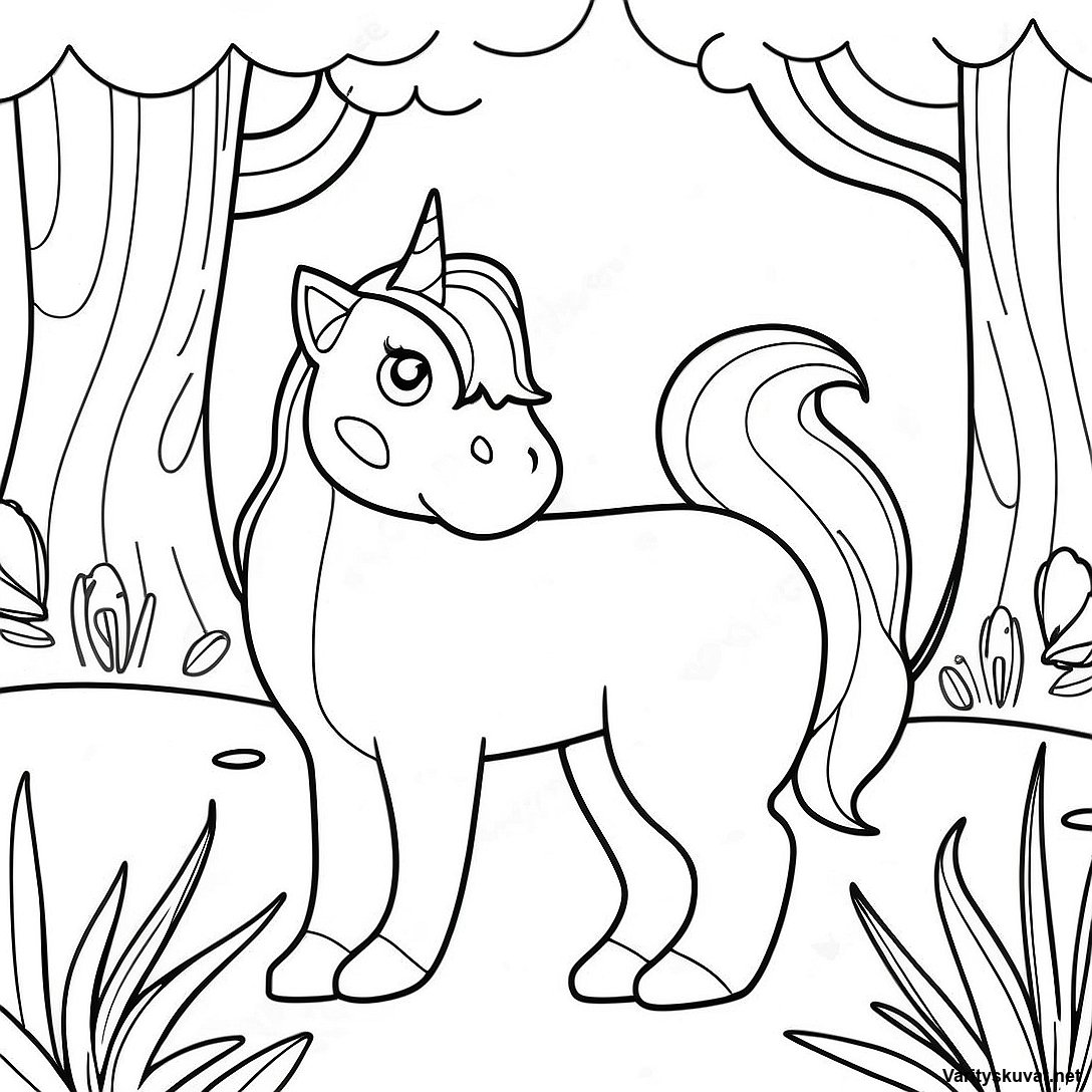Barbie yksisarvinen taianomaisessa metsässä värityskuva