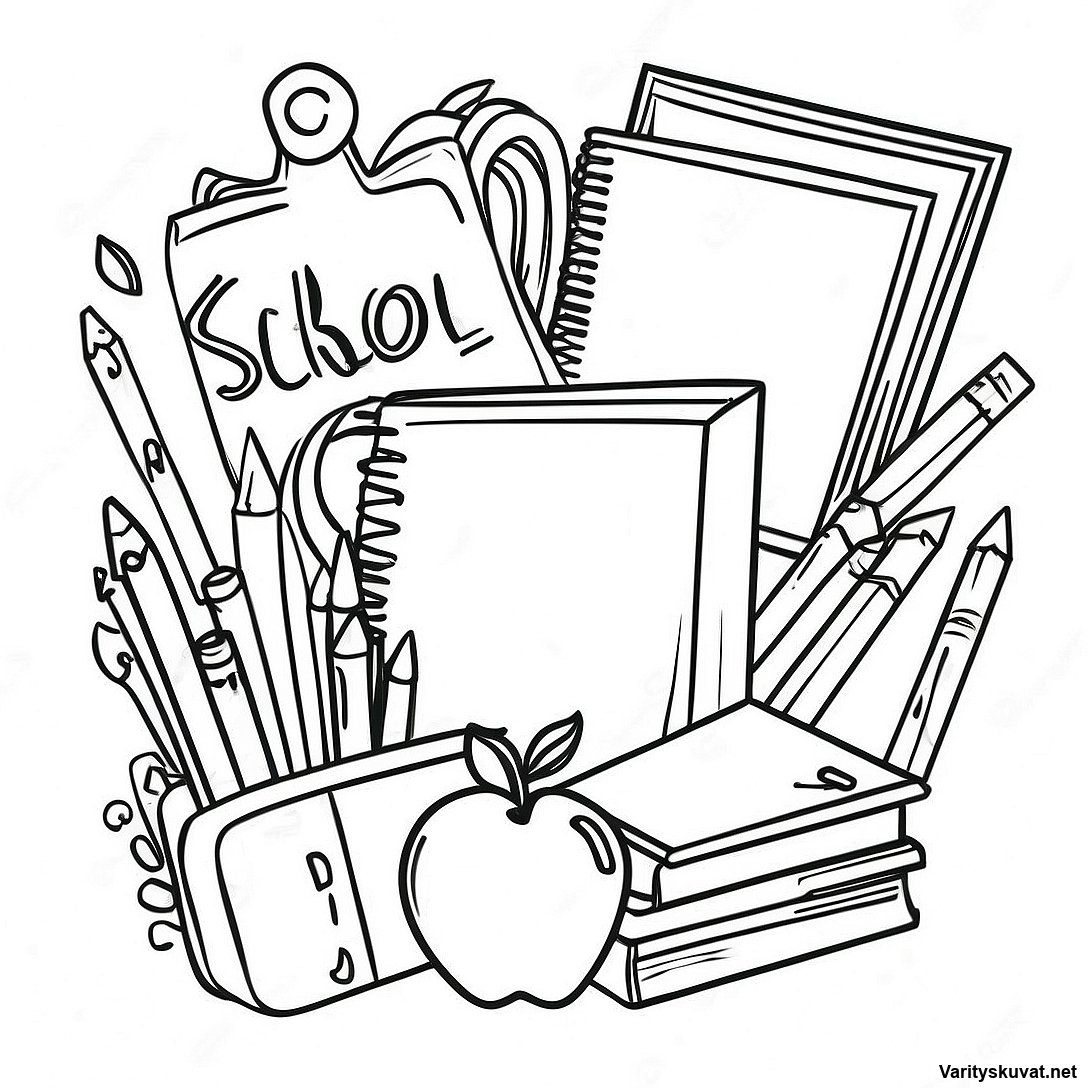 Koulutarvikkeet Väritettävä Sivun