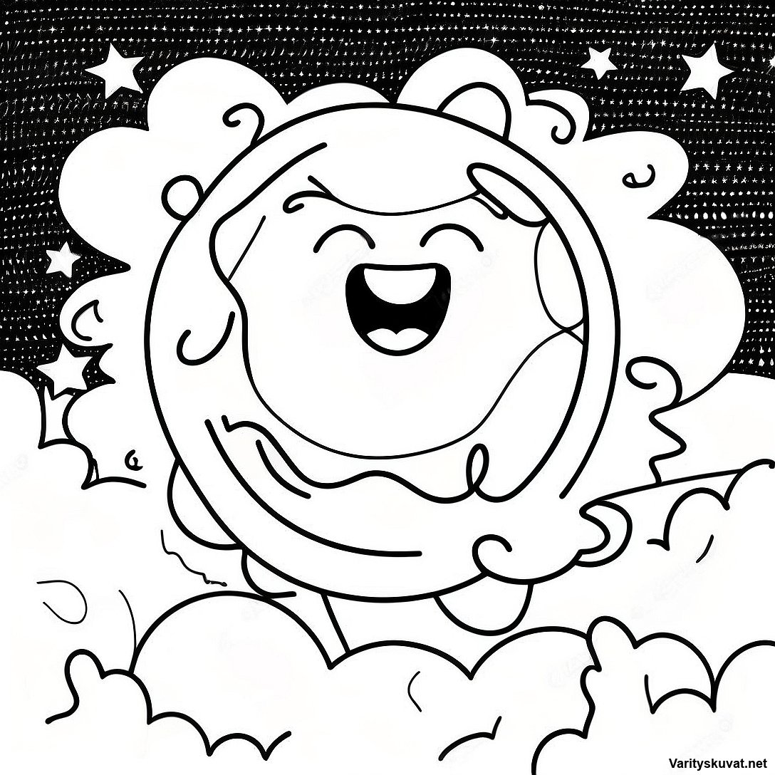 Söpö sarjakuvamainen aurinkokunta värityskuva