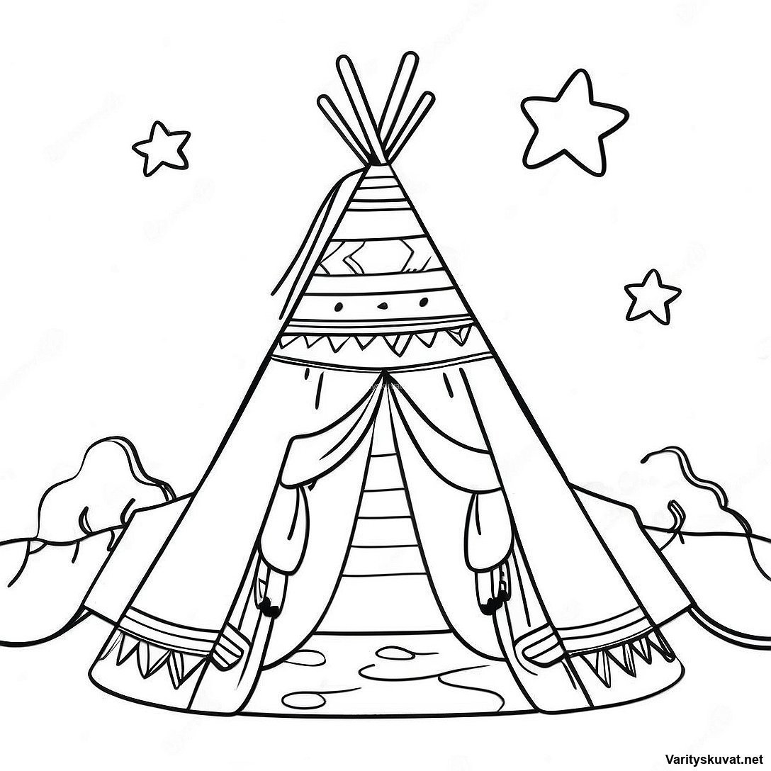 Lataa tulostettava PDF Teepee Tähtitaivaan Alla Värityskuva