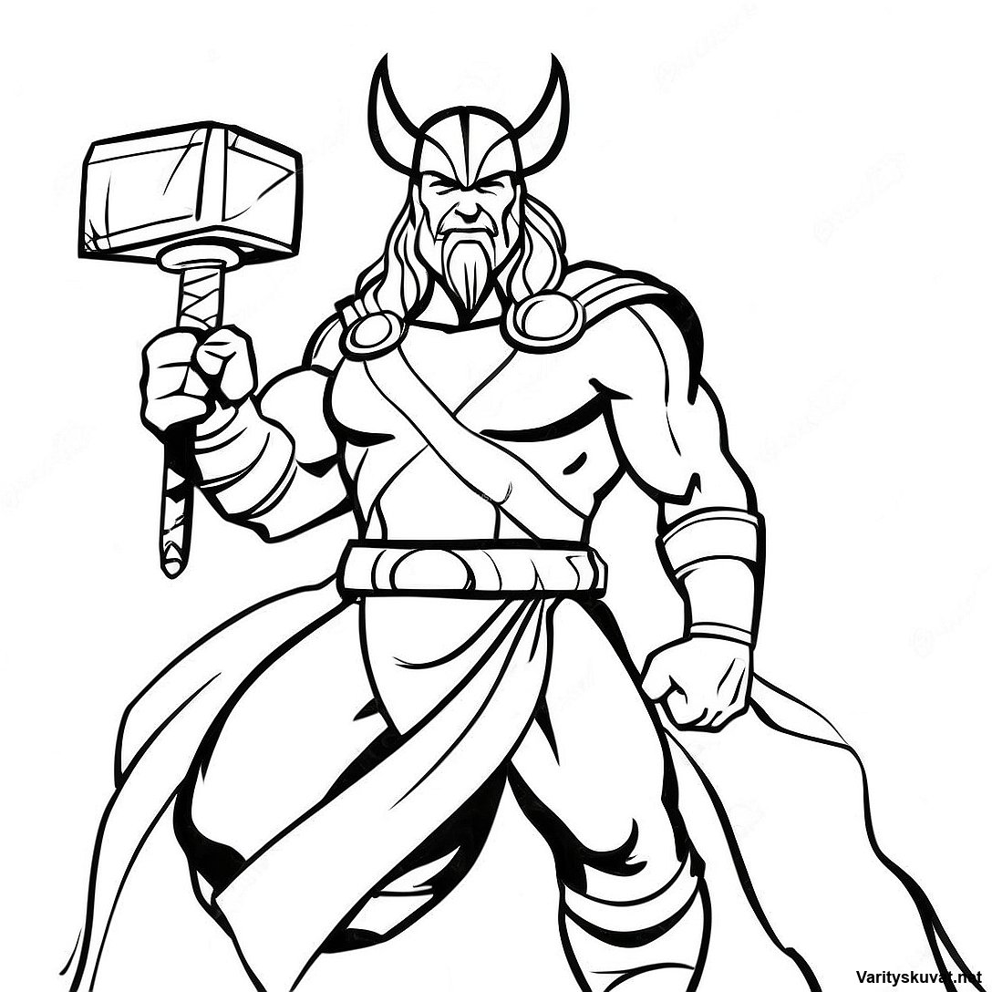 Lataa tulostettava PDF Thor Mjolnirin Kanssa Värityskuva