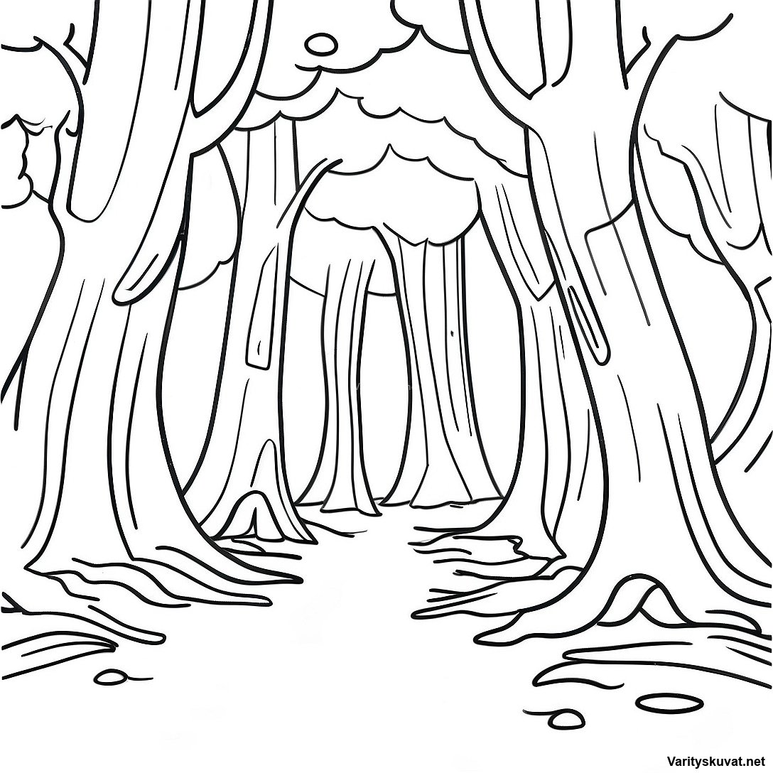 Lataa tulostettava PDF Tumma Fantasia Metsäkohtaus Värityskuva