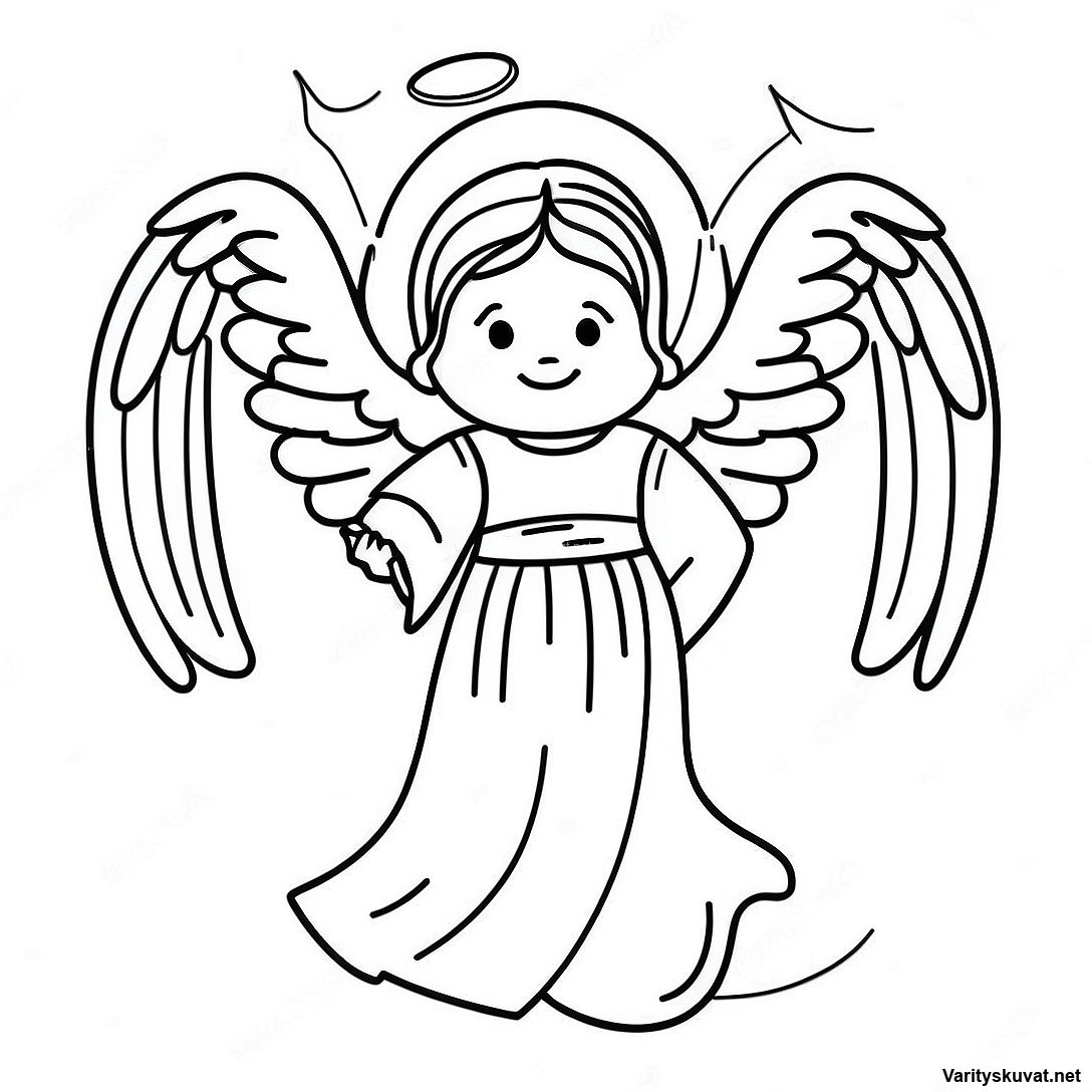 Lataa tulostettava PDF Tyylikäs Enkeli Halo Päässä Värityskuva