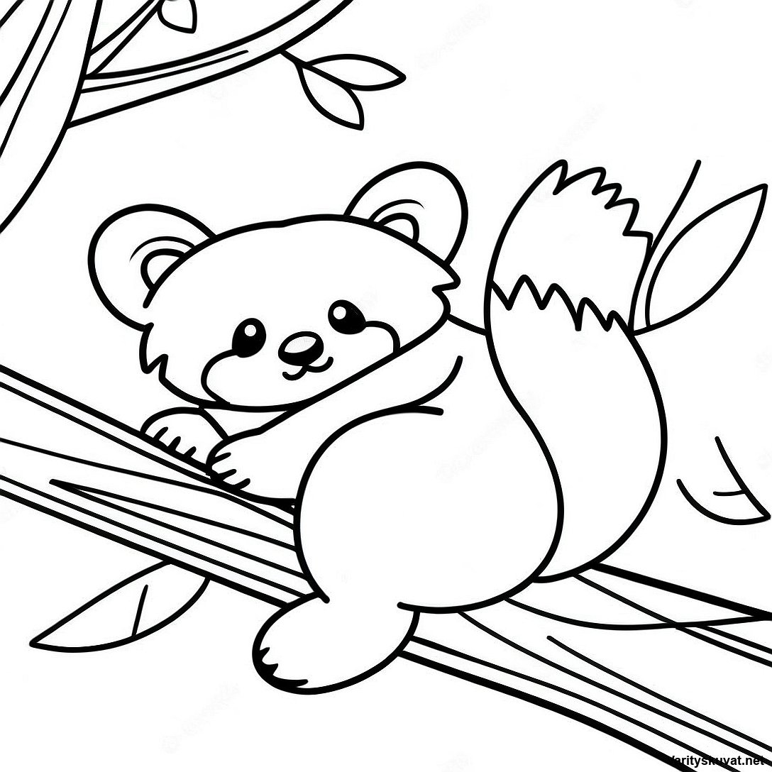 Lataa tulostettava PDF Uinuvä Punapanda Torkkumassa Oksalla Värityskuva
