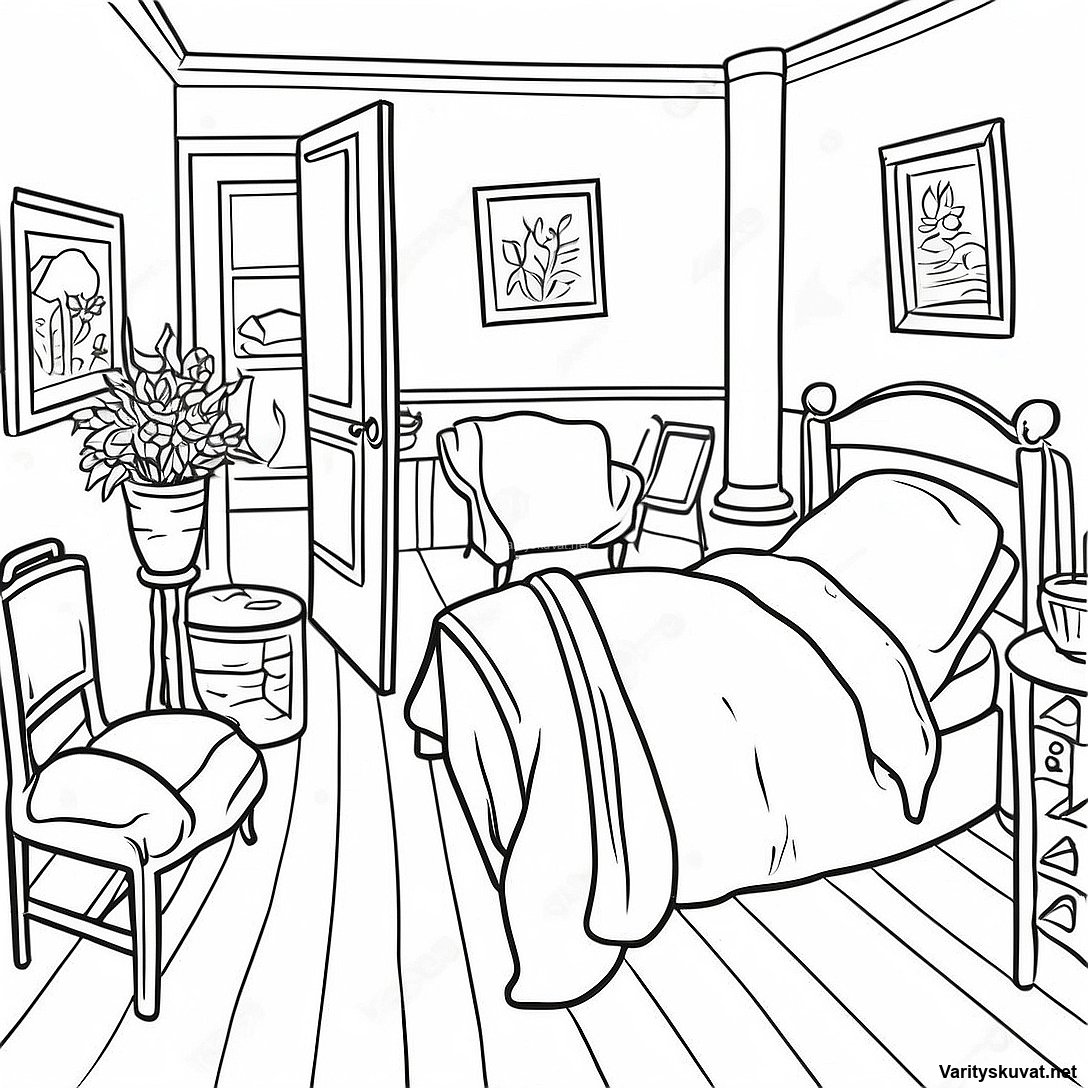 Lataa tulostettava PDF Van Goghin Makuuhuone Arlesissa Värittämislehti