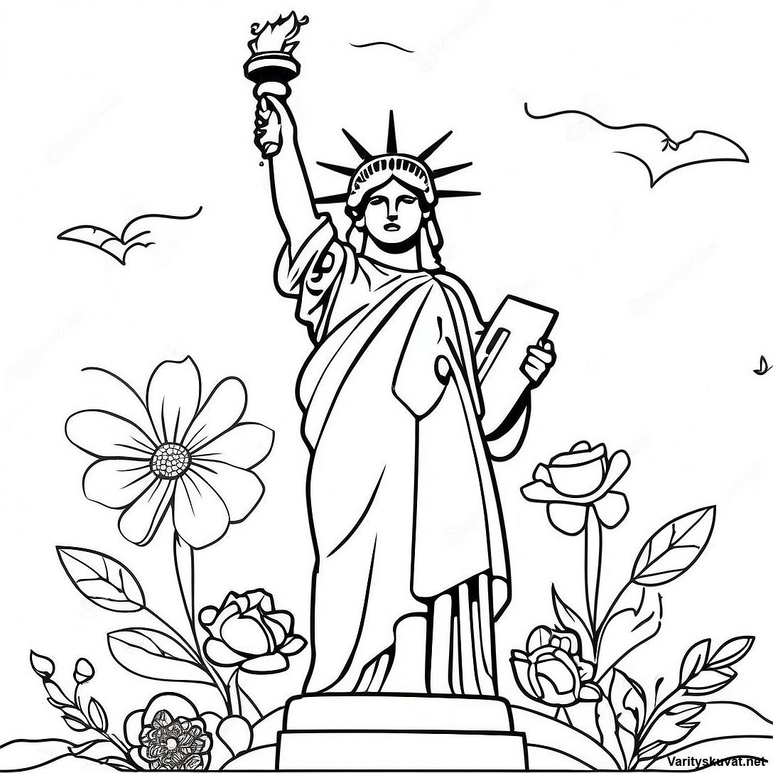 Lataa tulostettava PDF Vapaudenpatsas Kukkien Ympäröimänä Väritettävä Sivun