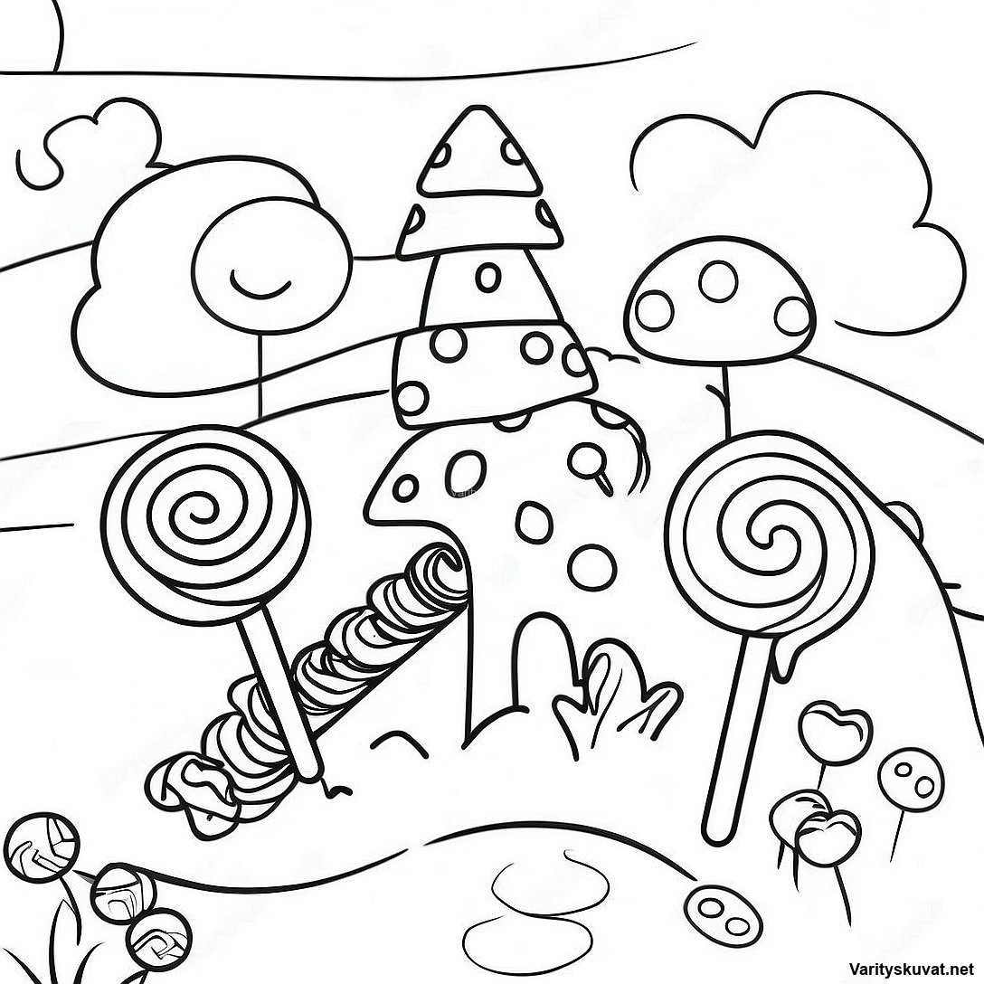 Lataa tulostettava PDF Värikäs Candy Land Värityskuva