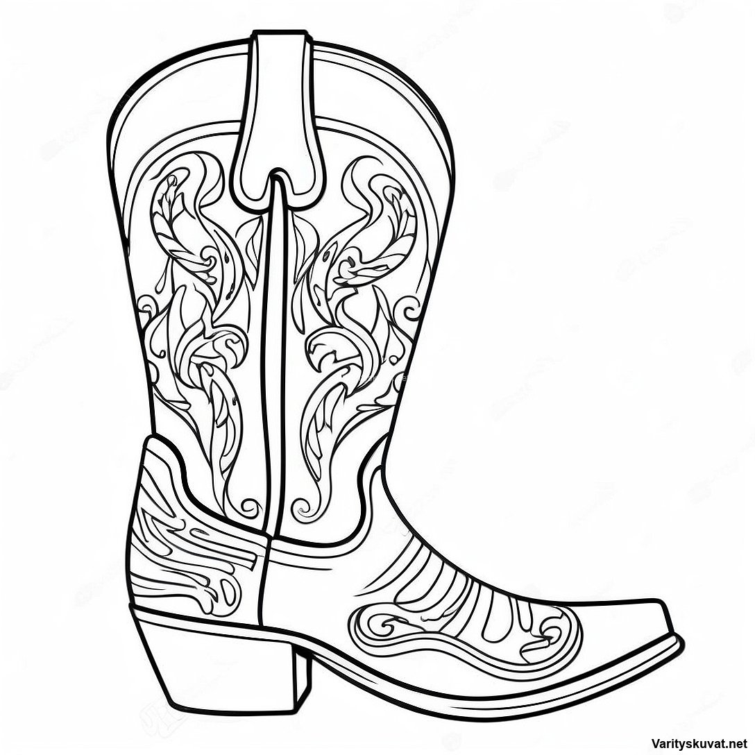 Lataa tulostettava PDF Värikäs Cowboy-Saappaan Värittämissivu