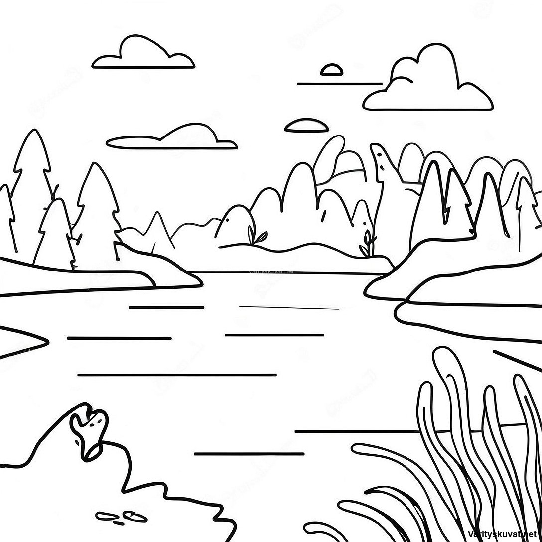 Lataa tulostettava PDF Värikäs Järvi-Sovellus Auringonlasku Värityssivu