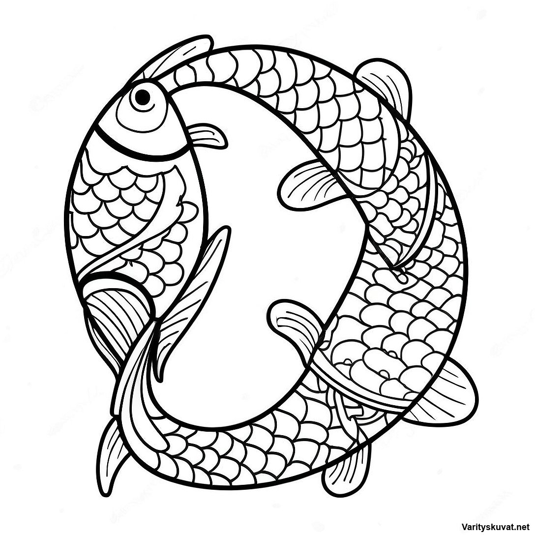 Lataa tulostettava PDF Värikäs Koi-Kala Uimassa Värityskuva