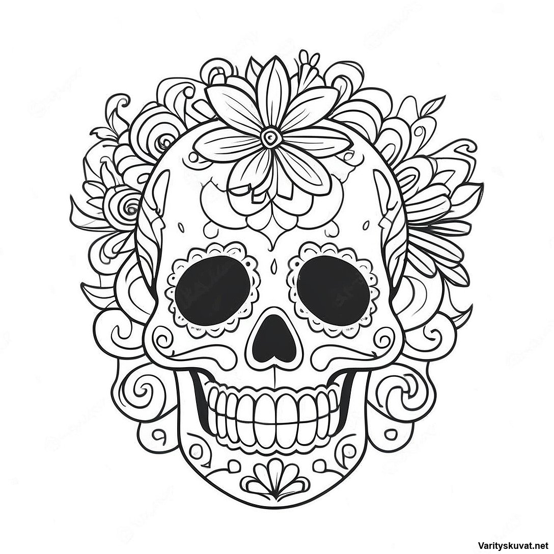 Värikäs Kuolleiden Päivä -Kallon Värittämissivu