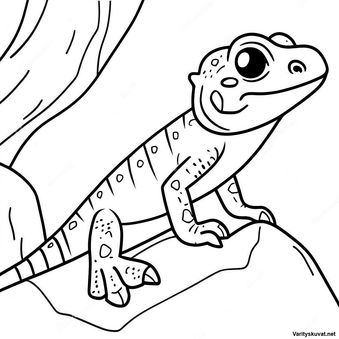 Lataa tulostettava PDF Värikäs Partakameleontti Kiipeämässä Kiveä Värityskuva
