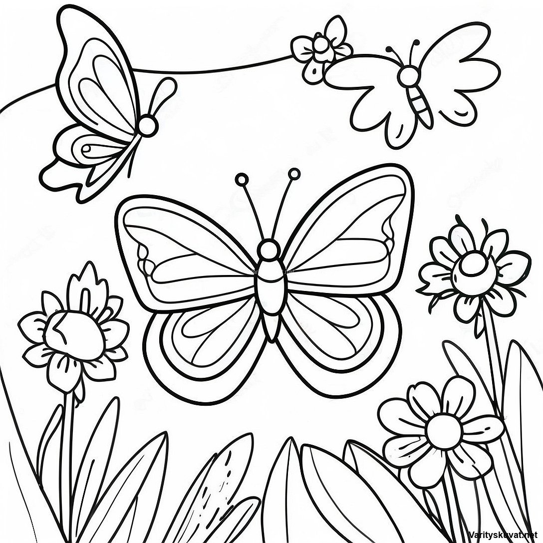 Lataa tulostettava PDF Värikäs Perhospuutarha Värittämissivu