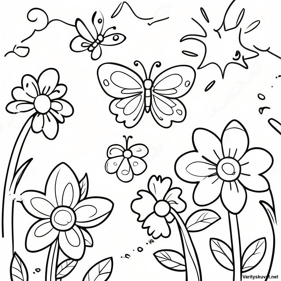 Lataa tulostettava PDF Värikäs Perhospuutarha Värittämissivu