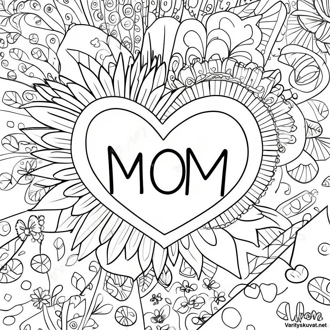 Värikäs Rakastan Äitiä - Värityskuva