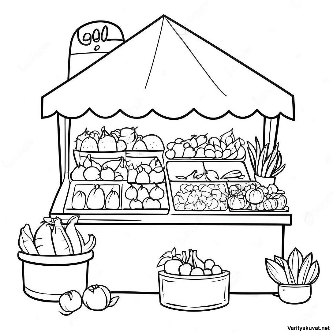 Lataa tulostettava PDF Värikäs Torikaupan Myyntipiste Väritettävä Sivu