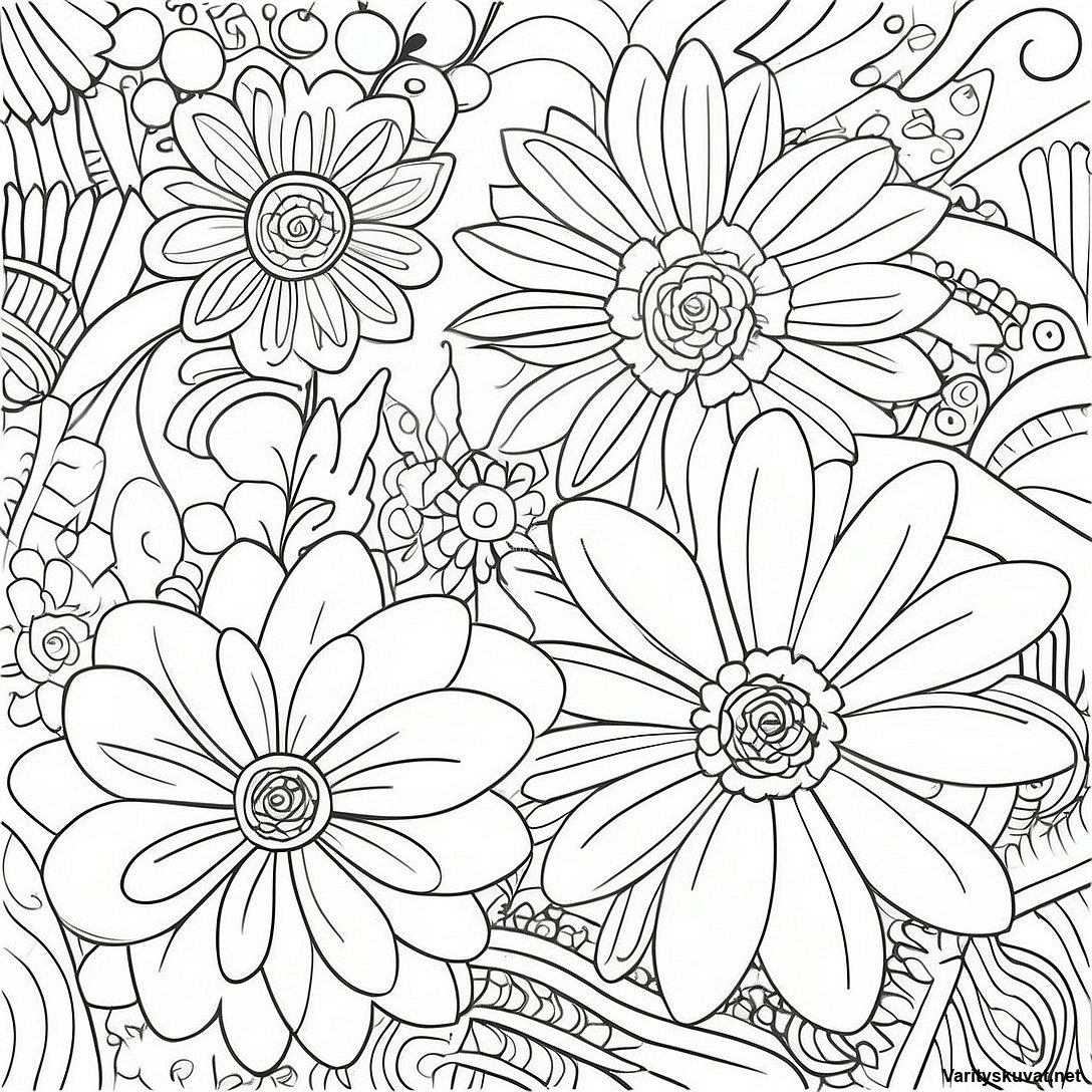 Lataa tulostettava PDF Värikkäät Kukat Kukassa Värittämislehti