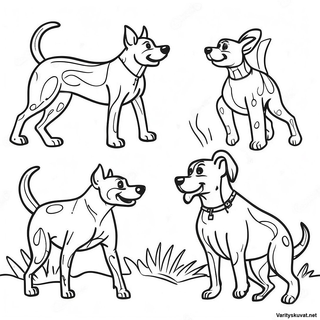 Lataa tulostettava PDF Värikkäät Metsästyskoirat Toiminnassa Värityskuva