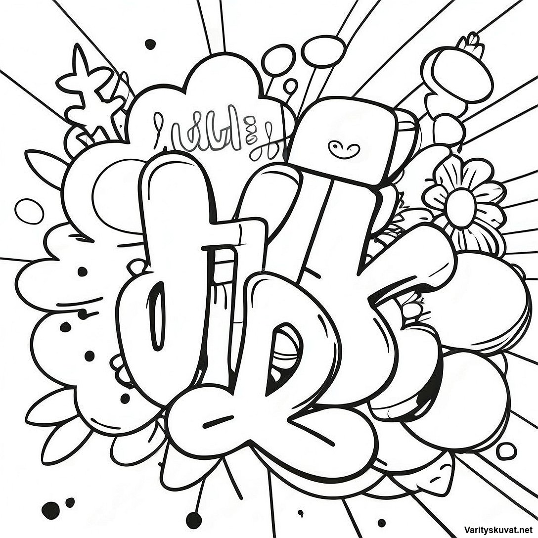 Lataa tulostettava PDF Värikkäät Siisti Graffiti Värittämissivu