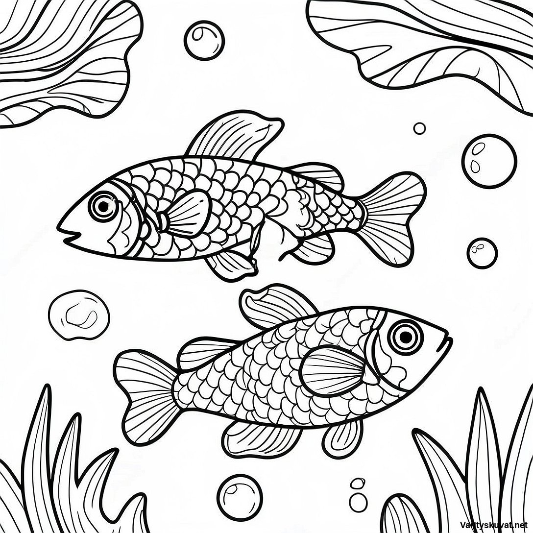 Lataa tulostettava PDF Värikkäitä Lammikkokaloja Värityskuva