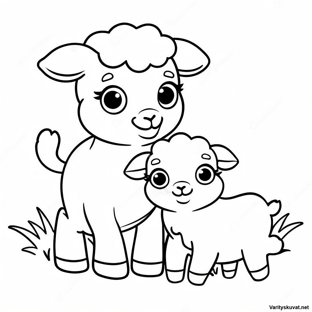 Lataa tulostettava PDF Vauva Lammas Ja Äiti Värityskuva