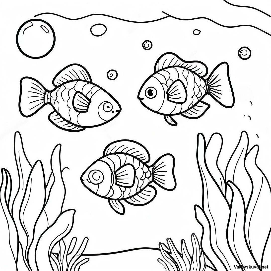 Lataa tulostettava PDF Vesialueen Kuplat Ja Kalat Värityskuva