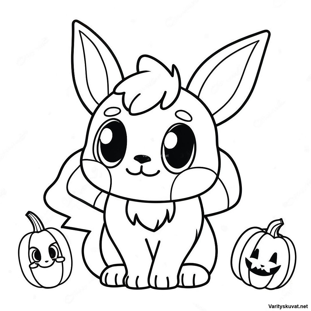 Viehättävä Eevee Kurpitsojen Kanssa Värityskuva