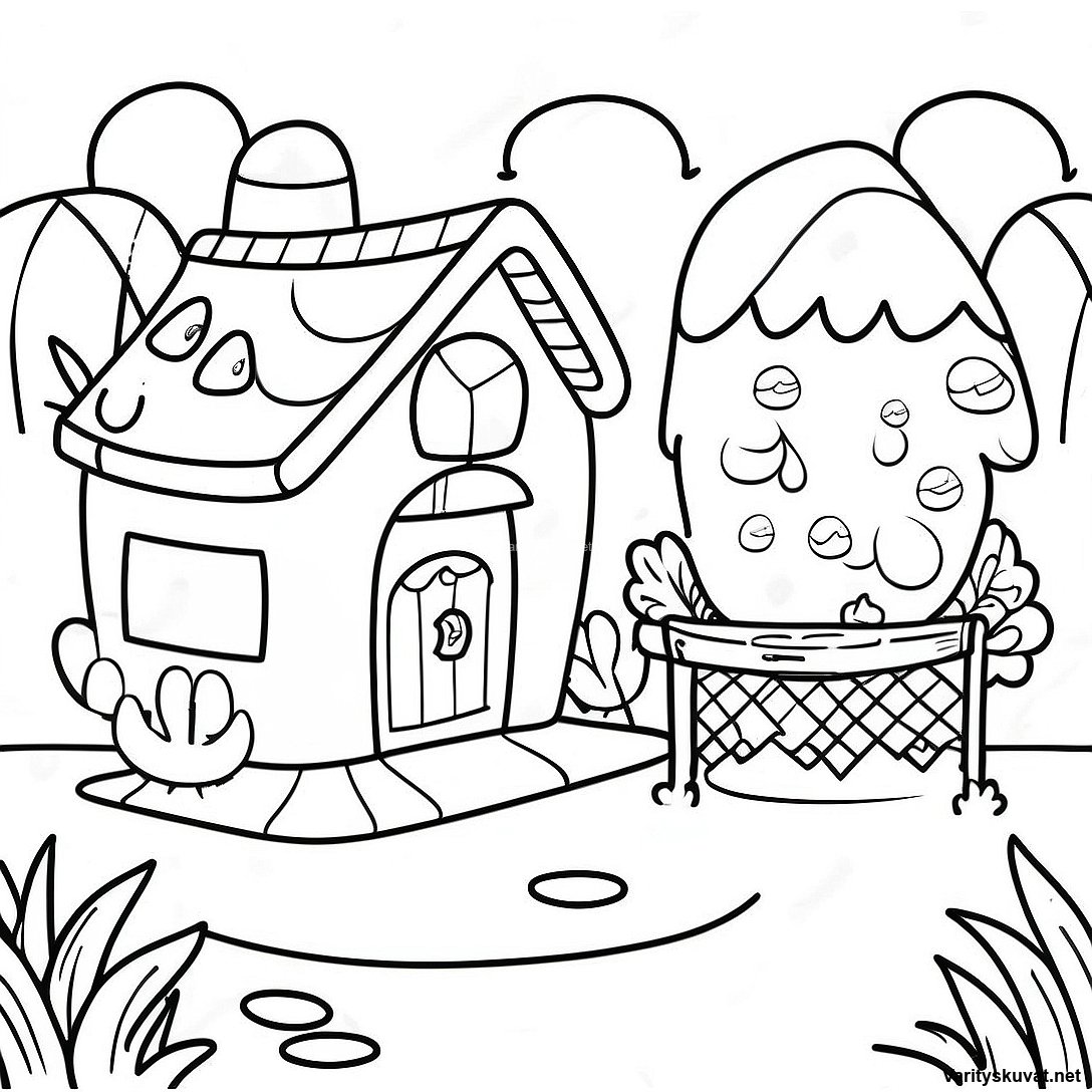 Viehätysvoimainen Animal Crossing -Kyläkohtaus Värityskuva