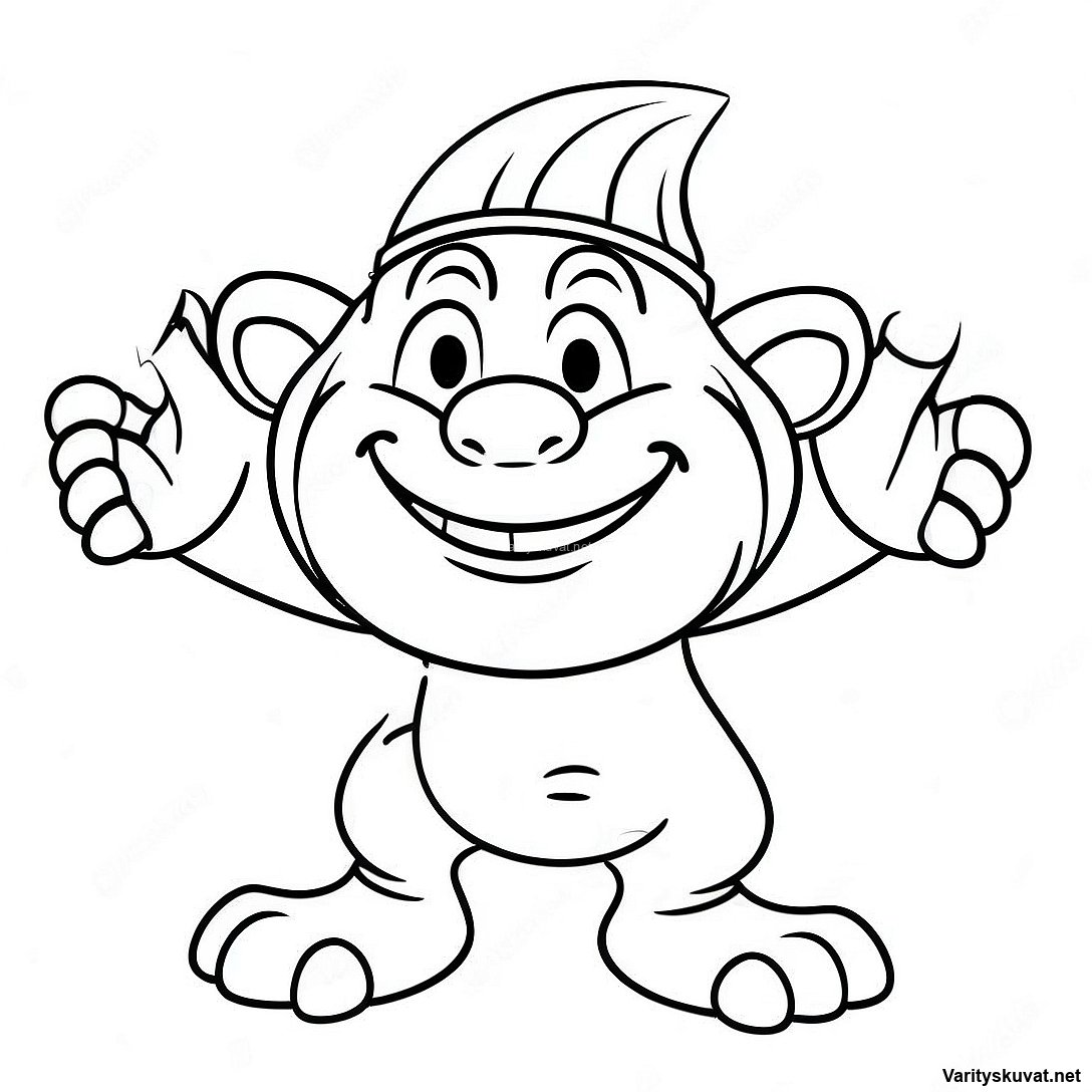 Lataa tulostettava PDF Ystävällinen Tonttu Suurella Hymyllä Värityskuva