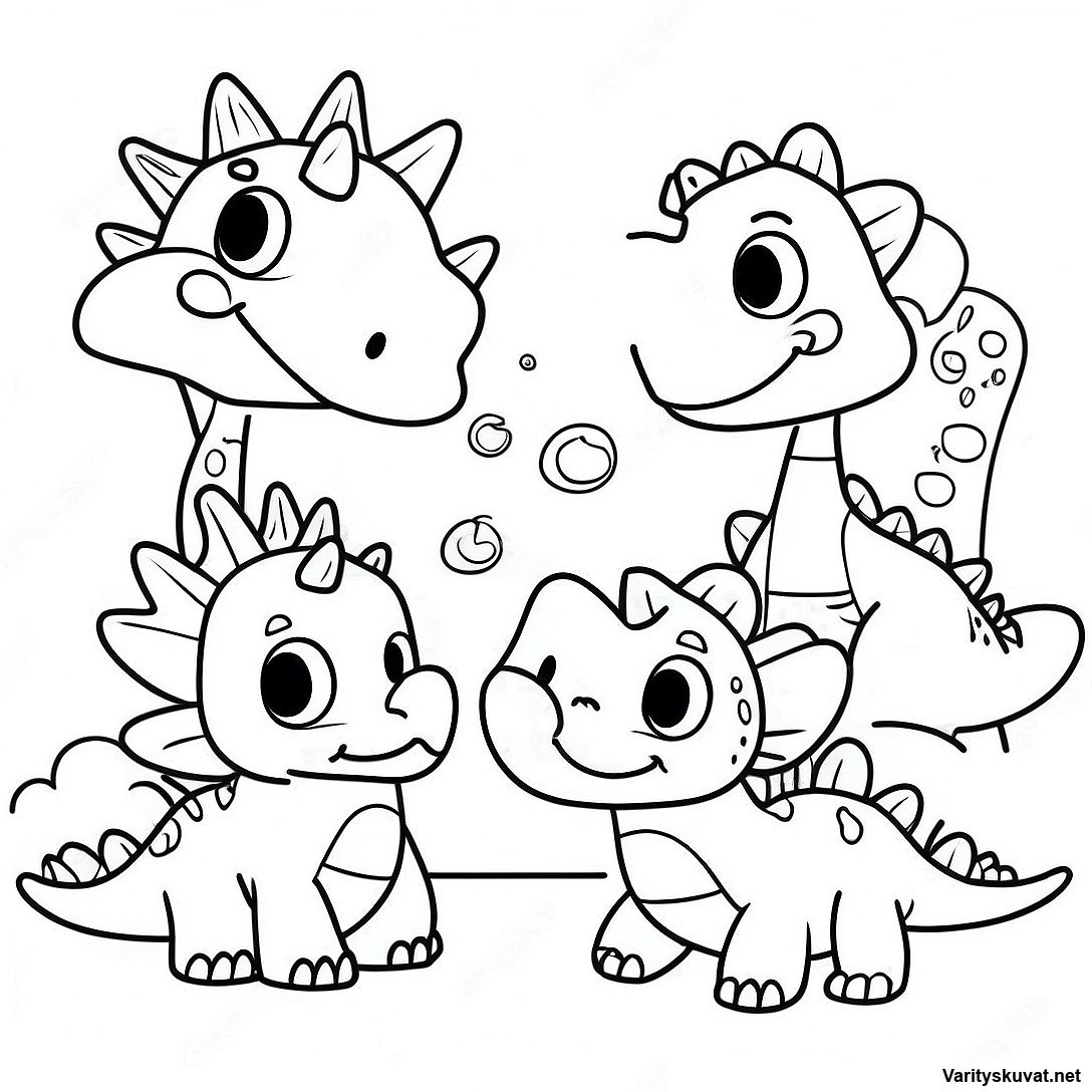Lataa tulostettava PDF Ystävälliset Dinosaurukset Värityskuva