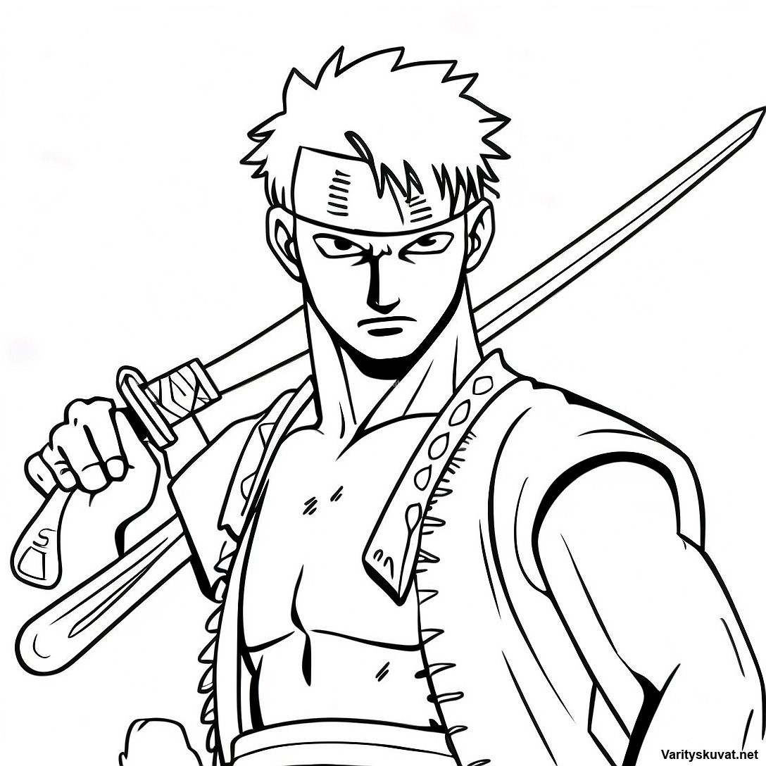 Lataa tulostettava PDF Zoro Miekkojen Kanssa Värityskuva